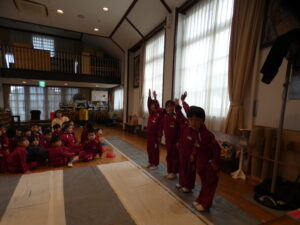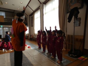 「一年生になるまでにお家の方と一緒に学校へ行く道を歩いて練習して下さいね」と言われると「はい」と元気に返事をしていました。保護者のみなさま、よろしくお願いします。