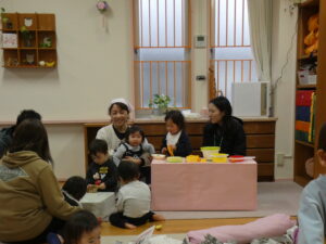 2026年2月12日 イベント 保育参観がありました 2月5日6日 保育参観がありました。 子どもたちは「ぼくのお父さんお母さんはいつ来てくれるのかなあ?」「一緒に○○がしたいなあ」「○○を見てもらいたい」と楽しみにしていました。和やかな雰囲気の中で、子どもたちの様子を笑顔で見守ってくださったり、我が子だけでなくお友だちとも一緒に遊んでくださったりして、皆様のお心遣いが嬉しかったです。 お忙しい中、参観にお越しいただきありがとうございました。